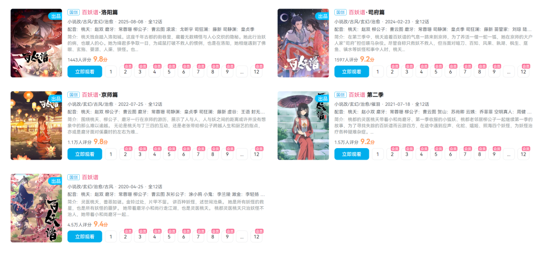 同样,《百妖谱》动画电影由哔哩哔哩影业等备案,其同名动画系列已播出五季,累计播放量达6.48亿,追番人数近795万,证明了该IP在古风奇幻赛道上的持久吸引力。