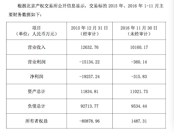 挂牌信息披露的数据,2015年度五谷道场的营业利润和净利润都为亏损状态,该年度公司负债总计为9.27亿元。2016年前11个月,五谷道场的营业收入约1.01亿元,营业利润为-360万元,净利润为-315.8万元。
