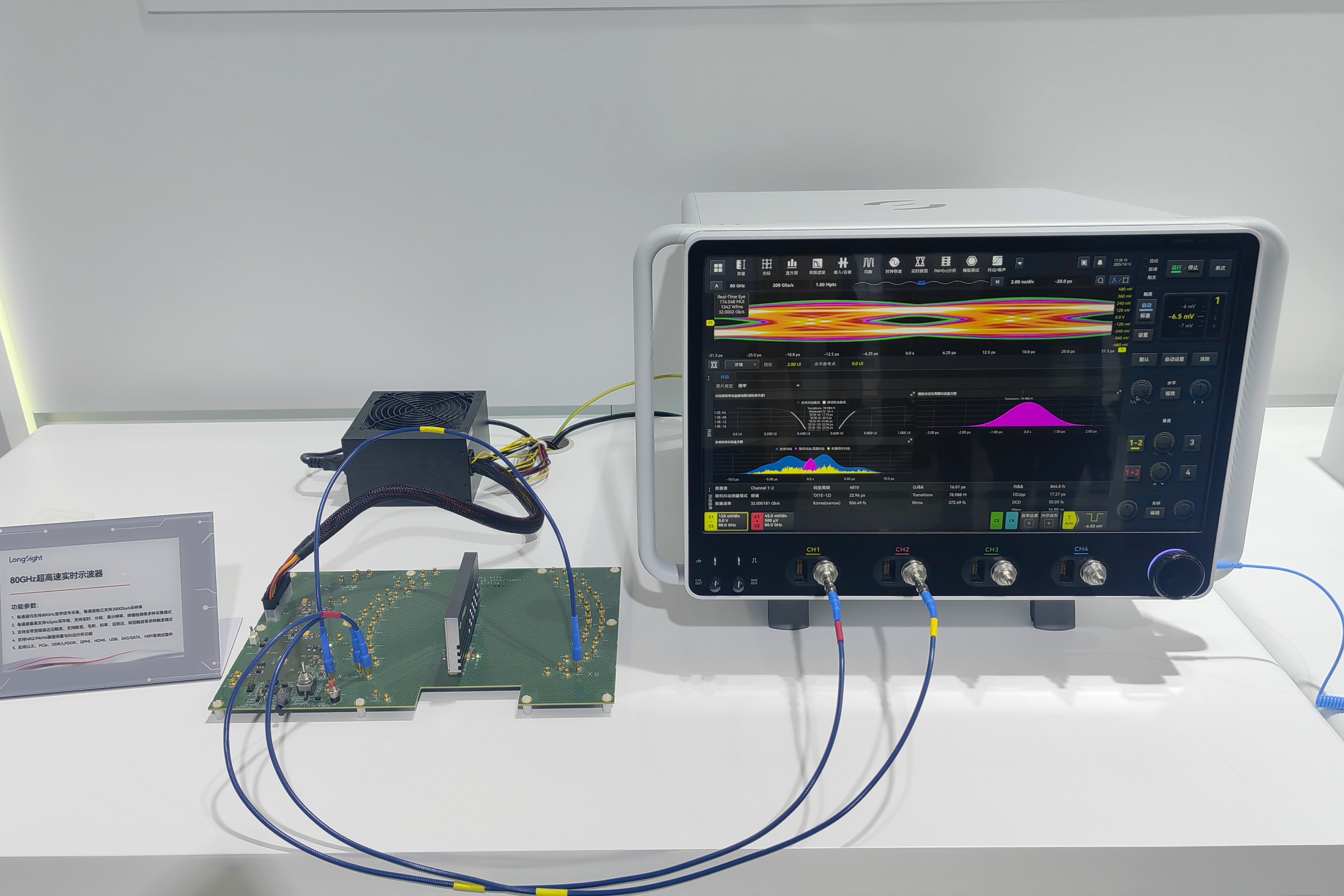 示波器是电子信息与半导体集成电路等技术密集型行业的关键仪器,用于分析电性能的变化过程,贯穿芯片从设计验证到量产测试的全过程。长期以来,中国企业被挡在高端示波器市场之外。全球市场几乎被是德、泰克、力科等厂商垄断,国内产品多停留在8GHz至18GHz区间,而国际领先产品带宽普遍超过60GHz,最高可达110GHz。