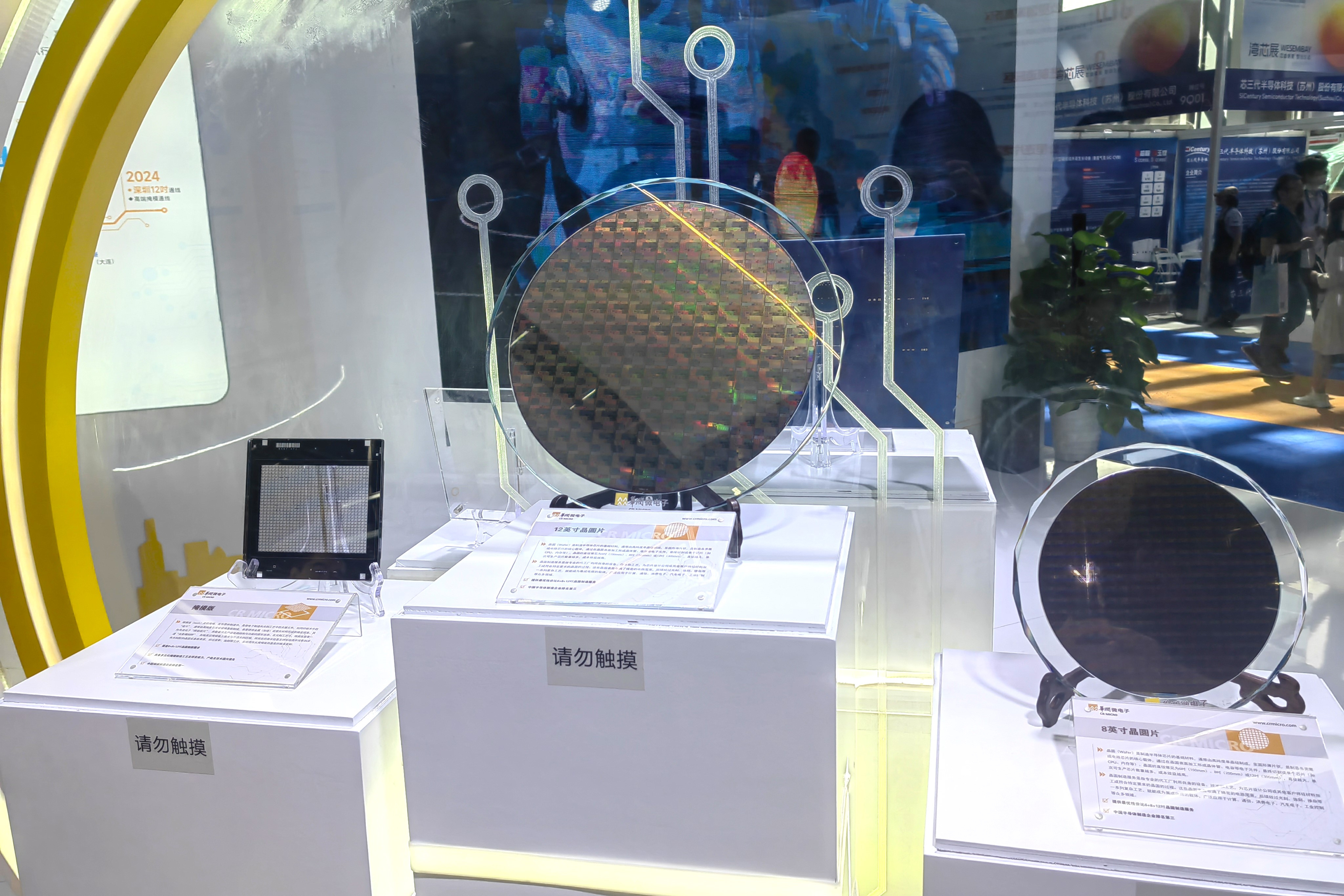 随着华润微12英寸生产线、粤芯12英寸生产线、增芯12英寸生产线的落地与投产,这个领域的空白正被填补。作为数量不多的晶圆制造参展企业之一,今年湾芯展上,华润微电子的12英寸晶圆片、8英寸晶圆片、掩模版等展品被观展者团团围住、拍照,并反复被问到投产、应用等情况。