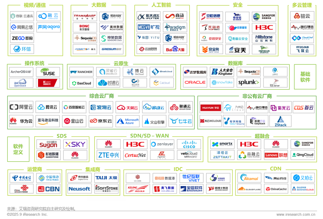 市场特征:人工智能已成为云服务行业建设及业务布局重点。在资源领域,各类参与者持续扩大智算基础设施投入;在技术领域,不断完善AI开发工具,围绕AI智能体重塑技术架构;在生态领域,与行业代表企业及各类ISV达成合作,推动新技术的行业落地。