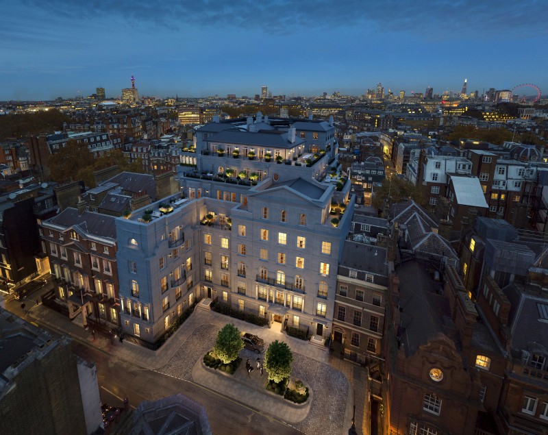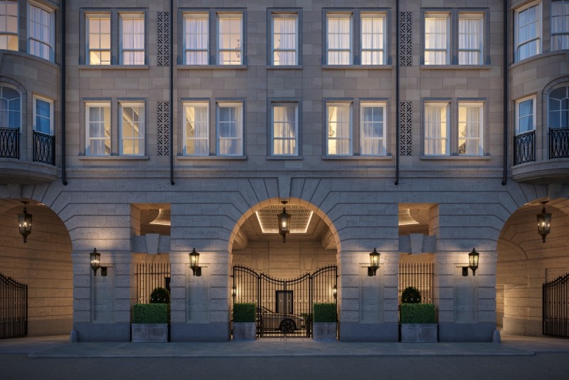项目坐落于梅菲尔核心地段 South Audley Street,距帕克巷与海德公园仅数步之遥。整体建筑由纽约建筑事务所 Robert A.M. Stern Architects(RAMSA) 掌舵,以经典英式立面致敬伦敦历史城区风貌;旅法美籍设计大师 Juan Pablo (J.P.) Molyneux 则负责迎宾大厅与会所空间设计,于古典格调中融入当代精神,营造兼具仪式感与居住温度的府邸美学。