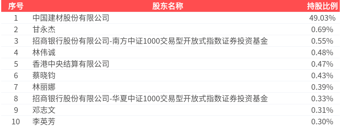 公司股东户数为2.93万户,前十大股东持股数量为2.53亿股,占总股本比例为52.98%,前十大股东持股情况如下: