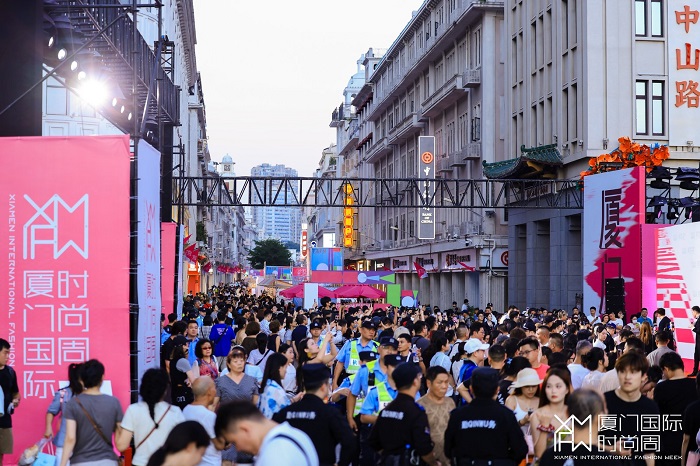 (2025厦门国际时尚周于中山路步行街举办为期4天活动,活动现场人潮涌动)