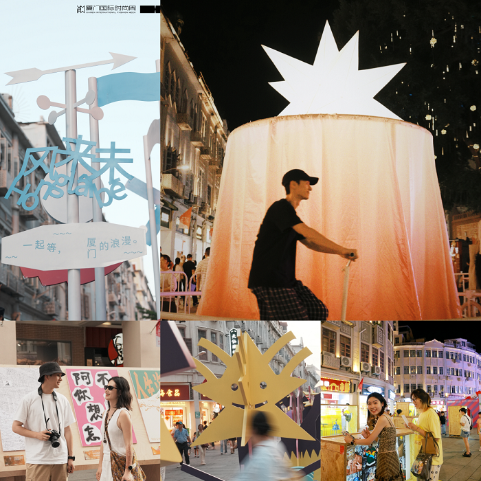 全新IP“好好生活节”以中山路为主场,在为期四天的活动中,成功构建了一个无边界、可游可感的城市时尚生活场域。通过艺术群展、主题市集、Live演出与体验工坊四大业态的有机融合,它将街区真正转化为一个开放、松弛且人人可参与的城市公共空间——“风来未”装置将厦门的海洋气息以“可视化”的姿态展示、“厦门脾气”在地平面设计展带来了更多元化的厦门感知视角、《移动的时尚考古》装置由法国艺术家 François Trézin(林富蓝)创作,以日常废弃物为材料,将物流箱重塑为时尚橱窗,以及融合剪纸与插画的公共艺术“闪闪小树”和童趣盎然的“骑到星星升起”交互体验等作品,不仅构建了一条可漫步、可互动的立体展线,更让艺术成为街区的日常语言,开启了一场“街区即展场”的沉浸式文化旅程。
