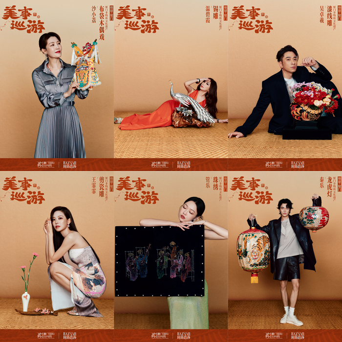 (多位明星艺人结合木偶戏、锡雕、漆线雕、剪瓷雕、珠绣、龙虎灯等非遗文化,为厦门文旅拍摄时尚宣传大片)