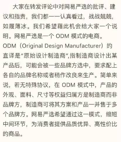 这次公关事件网易反应很快,24小时内更换了文案和海报,发了道歉信并详细解释了ODM的商业模式。