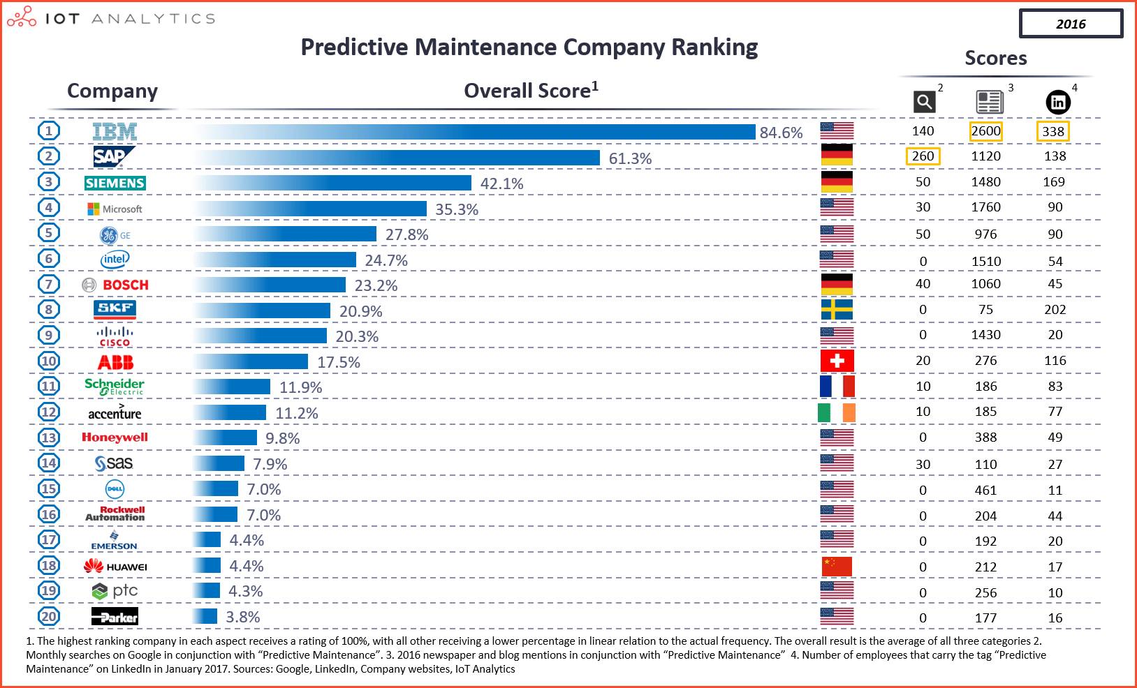 从IOT Analytical发布的2016年全球物联网企业前20强名单来看,大部分企业都是美国的企业,这与美国作为世界互联网技术中心的地位有关。而德国的SAP和西门子两家企业位居第二第三,这与德国近几年将“工业4.0”作为国家战略目标密不可分。在前20强中只有一家中国企业,即华为公司。参见下图2。