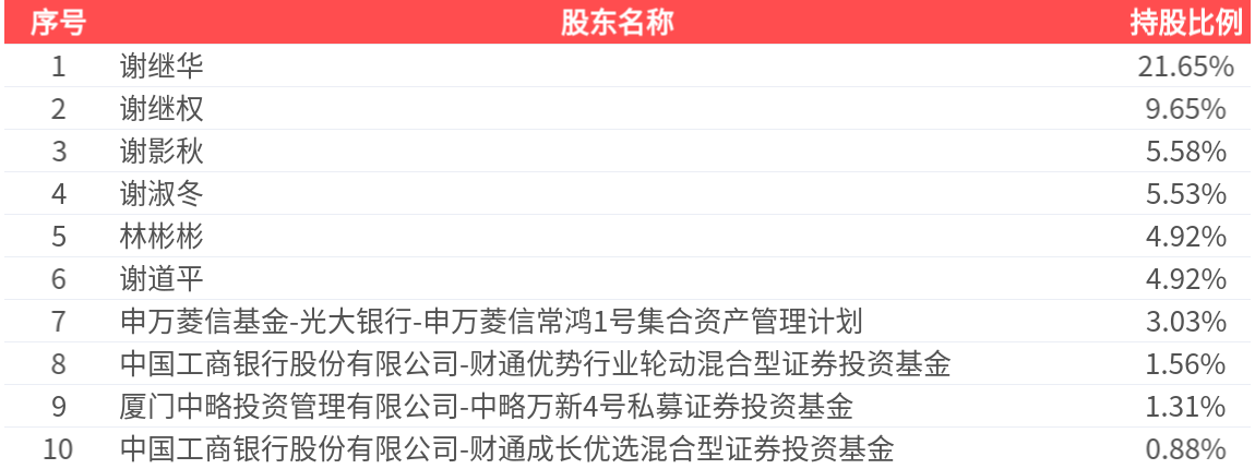 公司股东户数为1.27万户,前十大股东持股数量为1.96亿股,占总股本比例为59.02%,前十大股东持股情况如下: