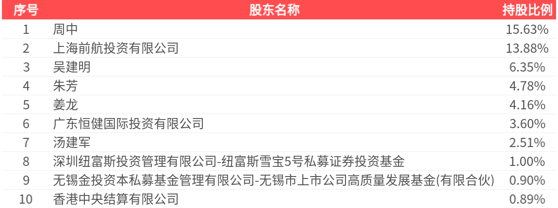 公司股东户数为1.51万户,前十大股东持股数量为1.35亿股,占总股本比例为53.68%,前十大股东持股情况如下:
