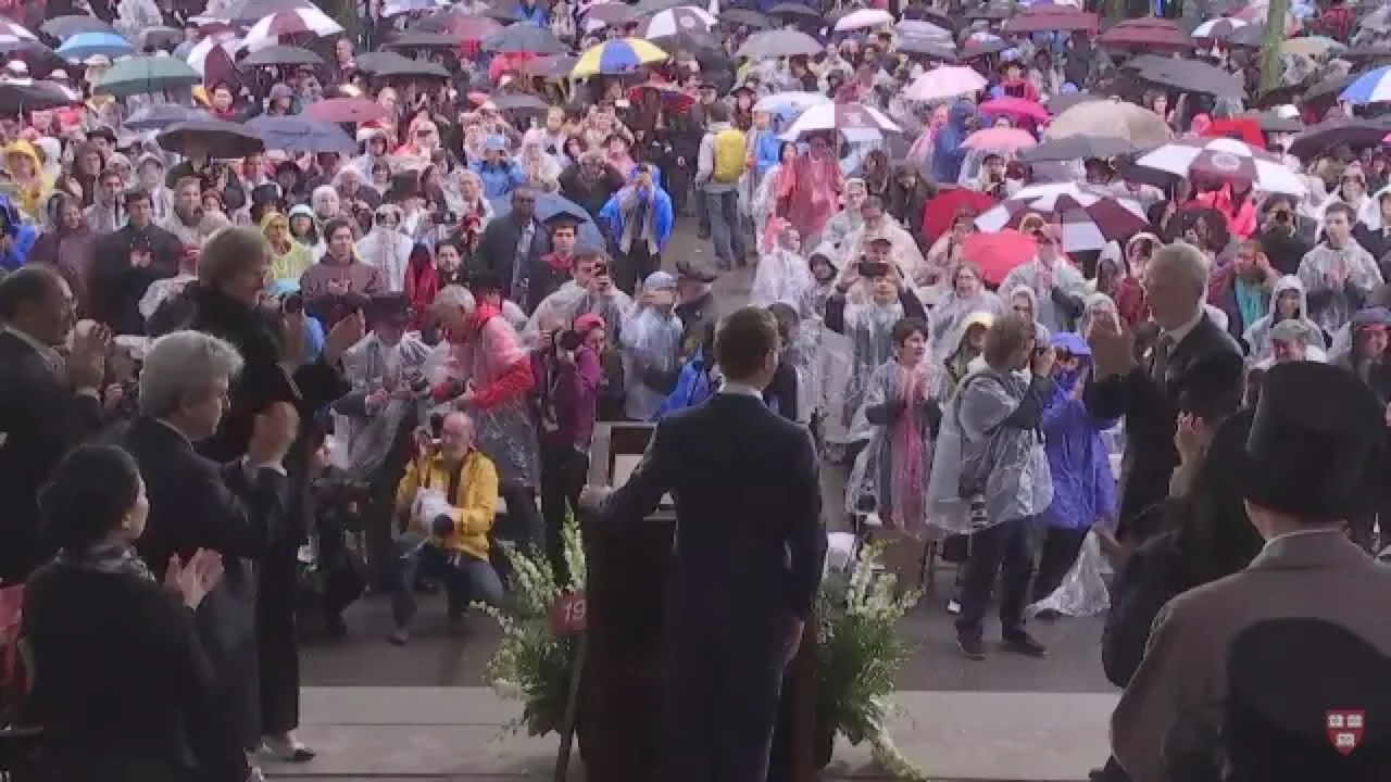 今天和你们待在一起我备感荣幸,因为说实话,你们完成了一个我永远无法办到的成就。等我做完这个演讲,这将是我第一次在哈佛大学完成的某件事。2017的毕业班同学,祝贺你们!