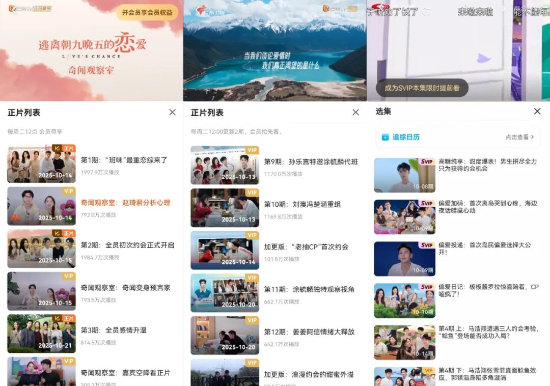 不过,这几档恋综在商业化上也并非毫无办法,最明显的表现和共性,是节目锚定会员内容。比如《恋爱特别邀请》VIP可解锁加更版内容,SVIP可提前观看新一期内容;《逃离朝九晚五的恋爱》设置VIP内容《奇闻观察室》,邀请“奇闻CP”观察全员表现;《偏爱之恋》更是推出多个衍生内容,如邀请以往参加过恋综的嘉宾或与节目嘉宾有关的成员陪看的《偏爱日记》,有聚焦每组互动的《高糖纯享》,有更多未播内容释出的《偏爱加码》,这些内容也是为SVIP专享。