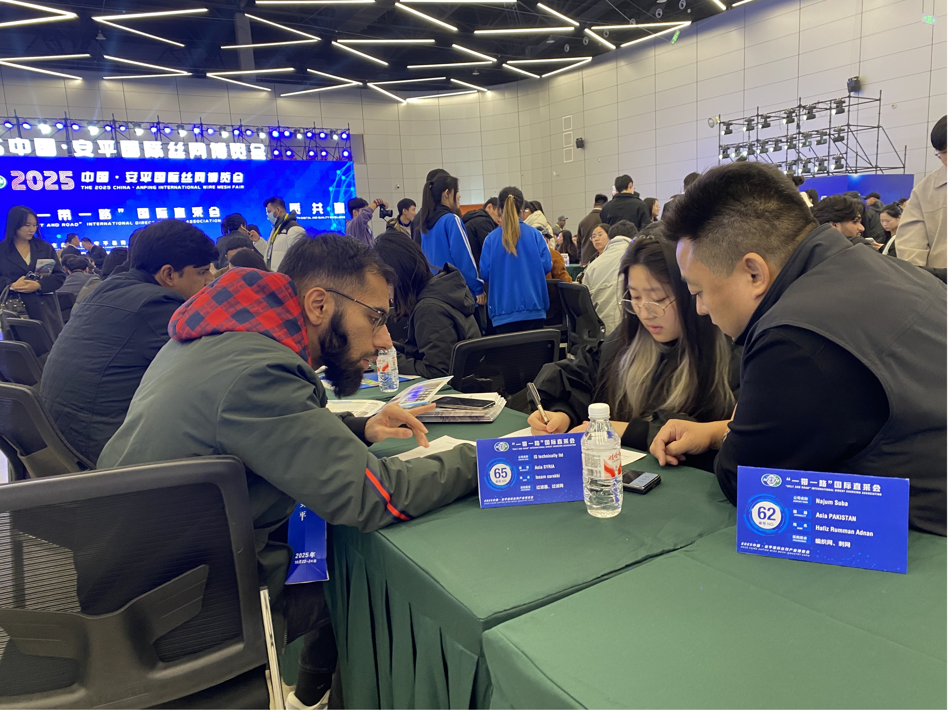 巴基斯坦哈桑进出口有限公司总经理哈桑·穆罕默德对此深有感触,他通过平台的AI匹配功能找到了适配高温环境的过滤网膜产品,现场与企业签订了286万元的采购合同:“数字化让合作更高效,安平丝网的技术实力和服务水平,让我们对未来合作充满信心。”