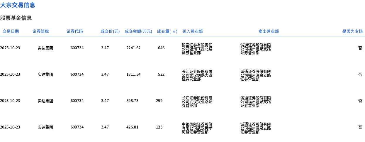 实达集团今日大宗交易平价成交1550万股,成交额5378.5万元