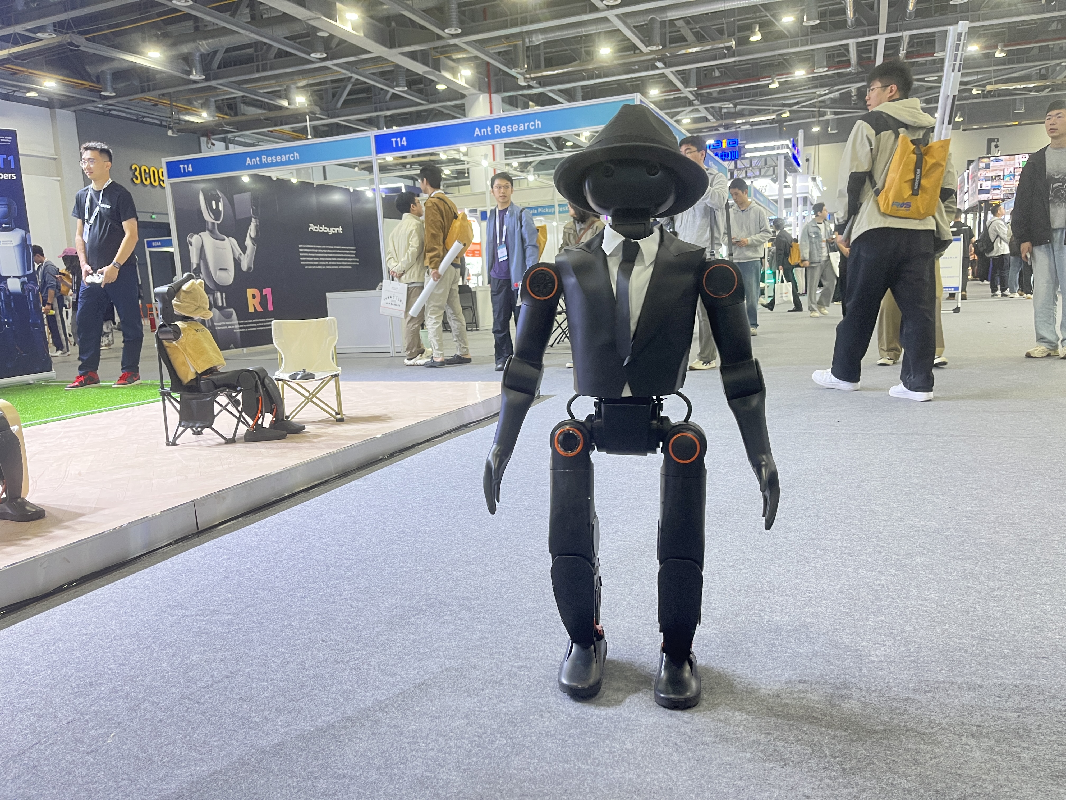 智元机器人在大会上同时展出了精灵系列、灵犀X2双足人形机器人、远征A2仿真训练机器人等全产品矩阵,通过互动呈现多场景技术落地成果。