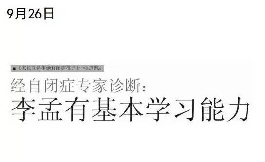 这个转机就是9月26号自闭症的专家经过权威检查,证实李梦是拥有基本学习能力的,这就意味着当他有学习能力时他应该被送入学校接受教育,所以个案突破也有了个坚实基础,尤其在多方撬动下社会就会发生改变。当时这所学校因为社会舆论非常多,最终改变决策将自闭症儿童重新纳入学校。