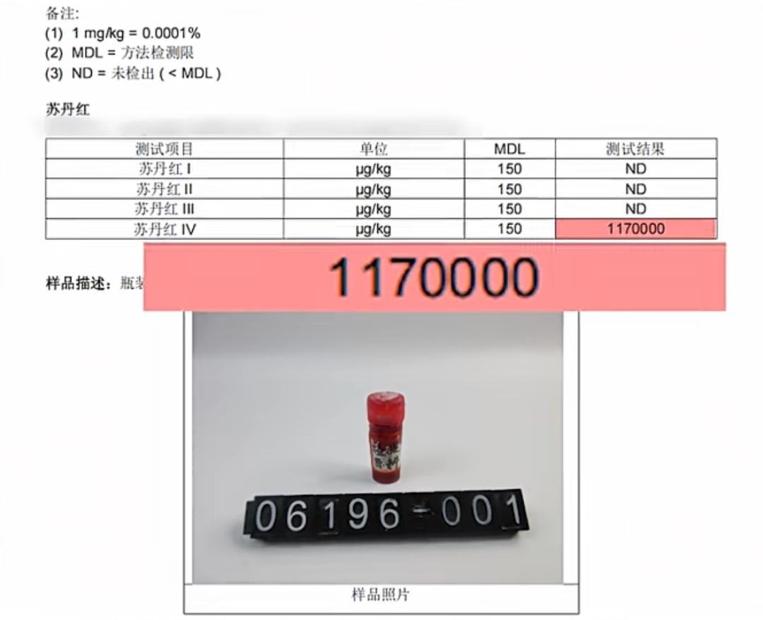 风波的起点,源于老爸评测团队对一款肉色护肤品的常规质量抽检。检测结果显示其中含有苏丹红,“匹配度高达94.5%,波形几乎一致”,然而产品成分表中却未见任何相关标注。