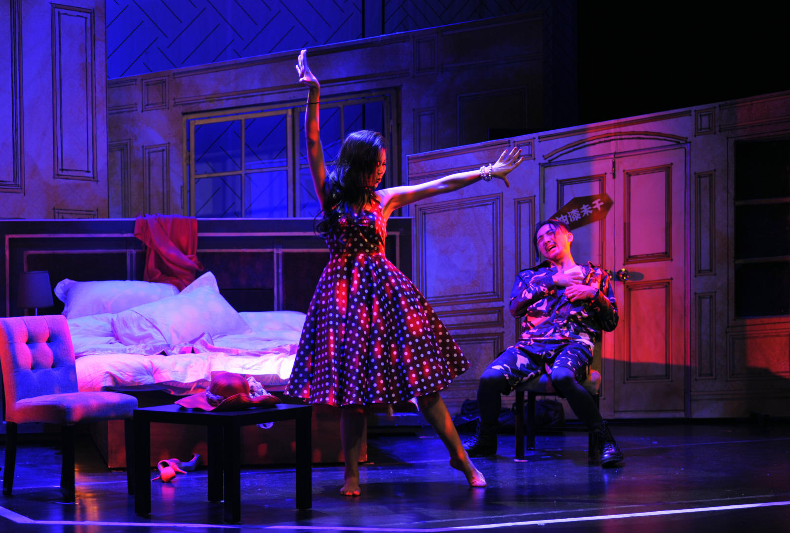 包括音乐这一次跟我的配合,我们怎么去填词?填了之后有什么改动?这个词应该出来的感觉是什么?这些都是很有互动性的,我叫这种为diversing theatre(多元剧场),但是这个剧场还需要有内容,所以我选了乔治费多的一个很扎实的剧本,然后我也请了康夫(注:合作编剧)跟我一块去改编这个东西,觉得挺有意思的。