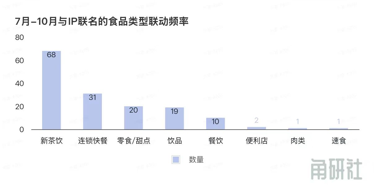 从图中可以见新茶饮品牌联动频率最高,仅三个月时间内就至少有不低于68起的联名联动合作。