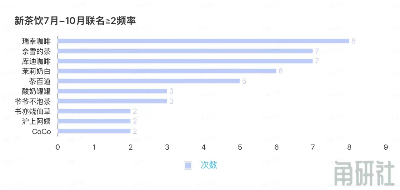 瑞幸咖啡的联名频次最高。