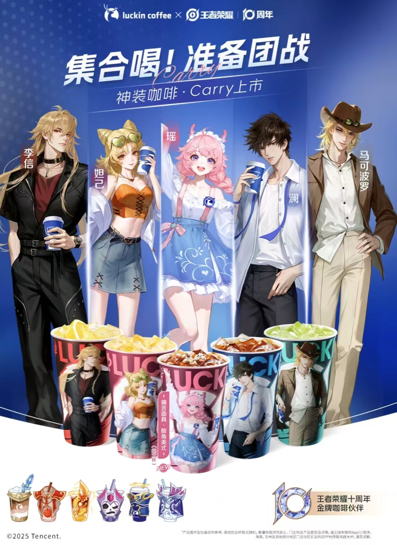 瑞幸咖啡联动合作的IP类型多样,不限于游戏、影视、动画、角色形象、明星等,最新的联动事件是与游戏《王者荣耀》的联动,《王者荣耀》作为国民级的手游,这次联动合作,是在IP十周年之际,再加上出圈的限定周边,热度和销量都非常可观。