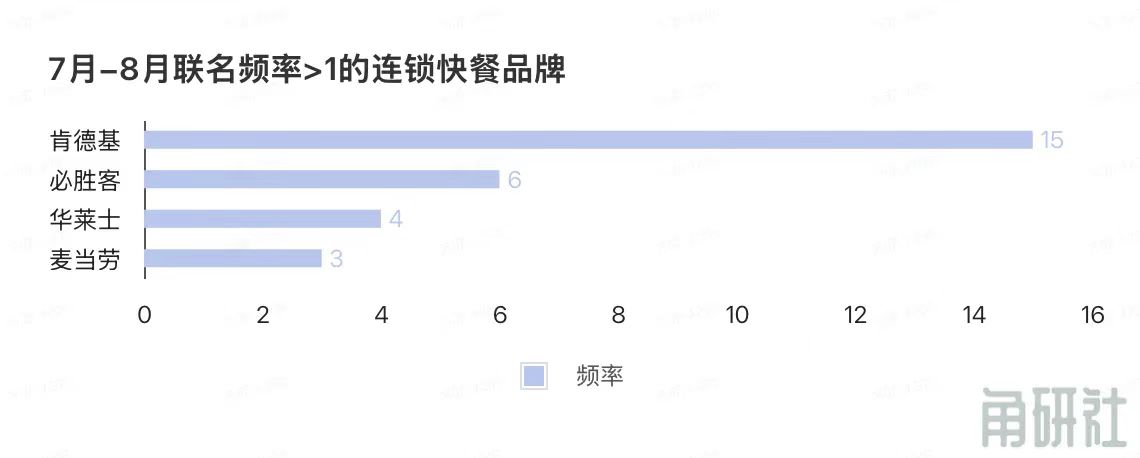 食品品牌中连锁快餐的联动频率也很高了,平均下来每个月约有10起。