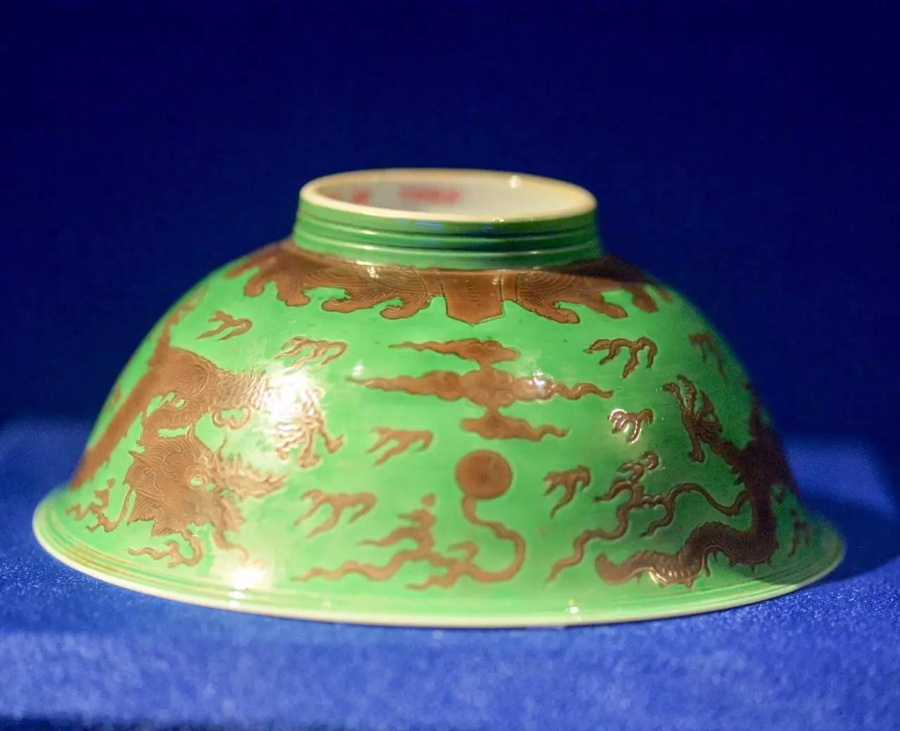 雍正款绿地紫彩云龙纹碗