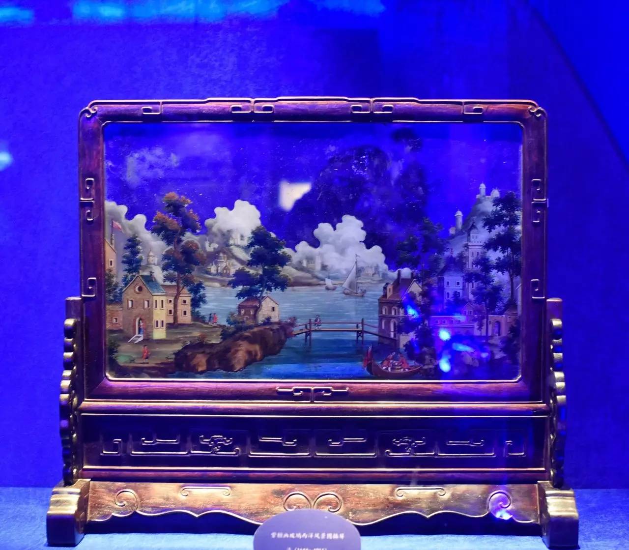 清 紫檀嵌画玻璃西洋风景图插屏