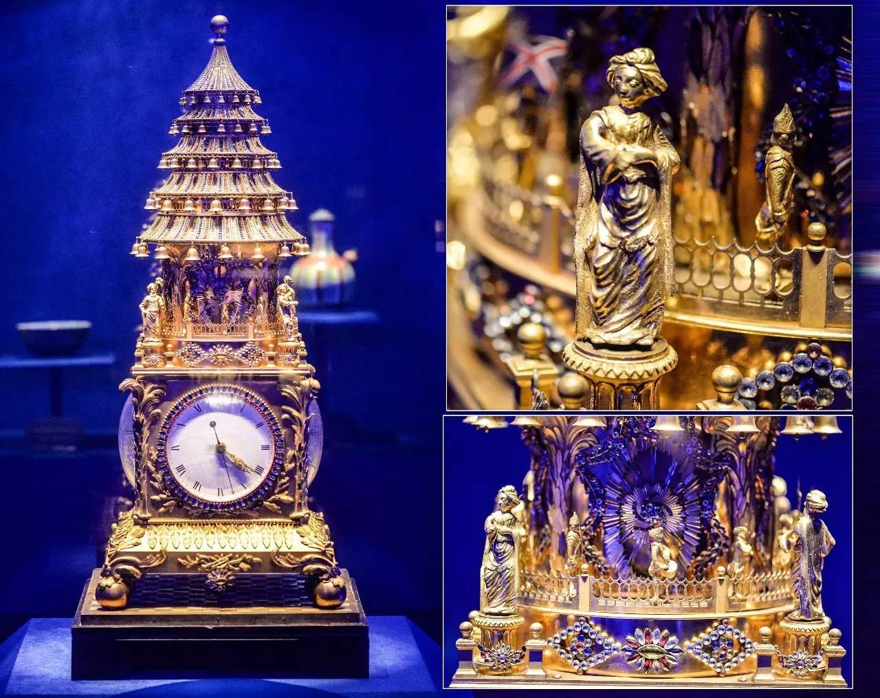 18世纪 铜镀金嵌石转人升降塔钟