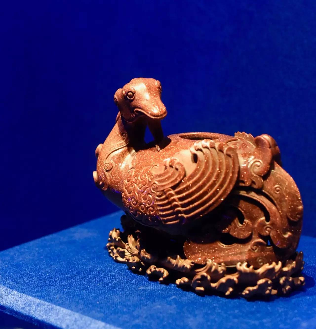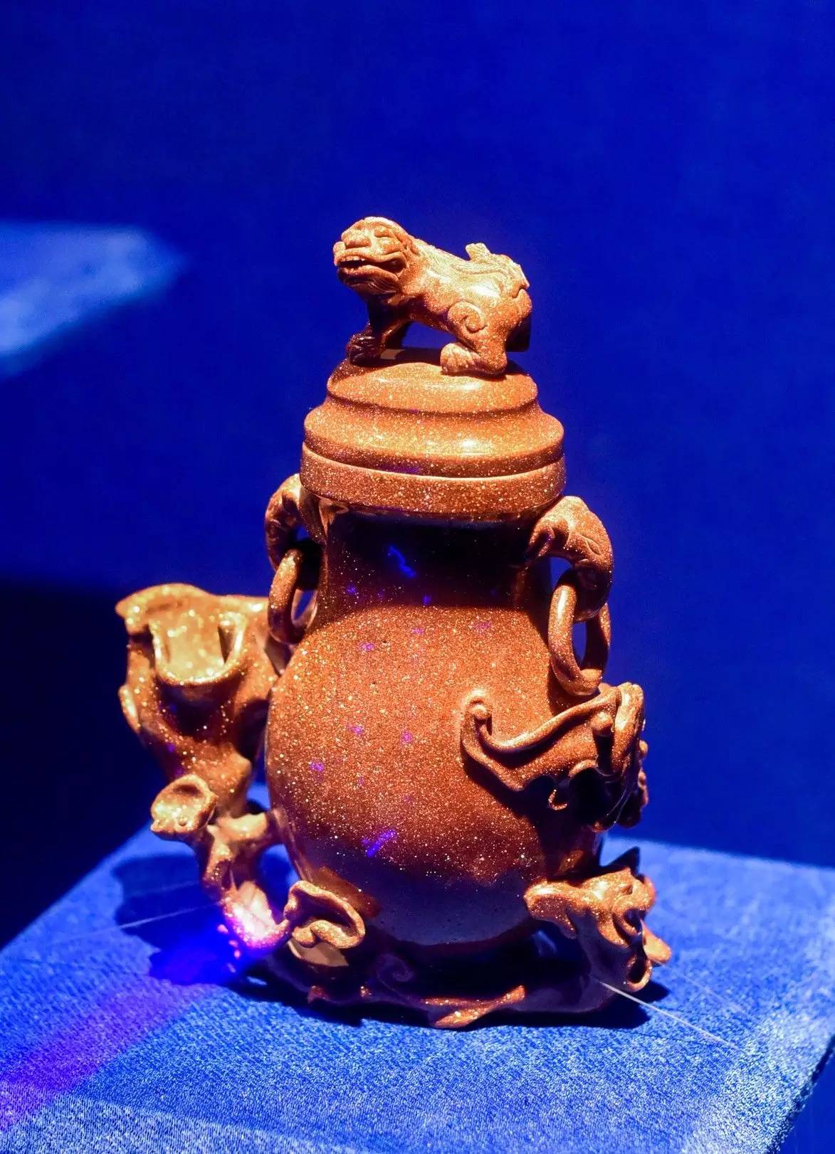 金星玻璃:意大利人称其为“avventurina”中文音译为“温都里那石”。在17世纪威尼斯的一家玻璃制造作坊中,因有人将铜屑不慎掉入融化的玻璃中而偶然诞生。清康熙年间,作为外交礼品由欧洲传教士带进中国,由于技术条件制约,直至乾隆六年(1741年)金星玻璃才被法国传教士试制成功。由于制作难度很大,即便破碎的金星玻璃制品,乾隆爷也不舍得扔掉。乾隆后期,由于负责技术生产的传教士相继回国,金星玻璃也就淡出视线了。那灿若星辰的玻璃,留给后人的只有无限的遐想。