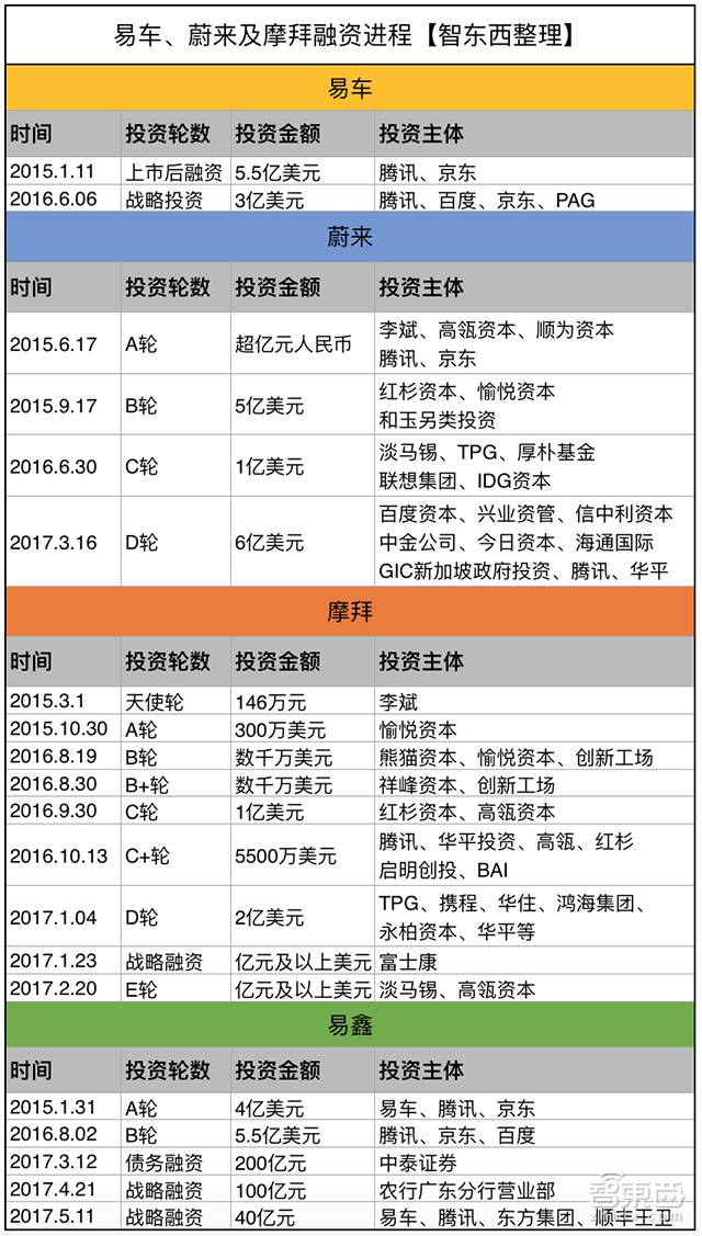 超过50家投资机构向李斌和他的项目伸出了橄榄枝,根据公开可查询的信息,李斌主导的易车、摩拜、蔚来、易鑫四家公司近年来总共吸收了超过35亿美元融资,另外易鑫金融最近还签下了340亿元的战略融资协议。