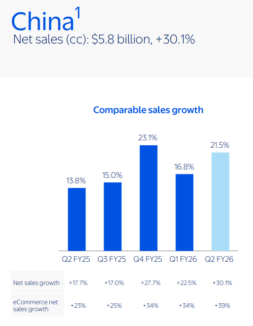 ▲2026财年第二季度沃尔玛中国业绩数据 图源:沃尔玛中国官微