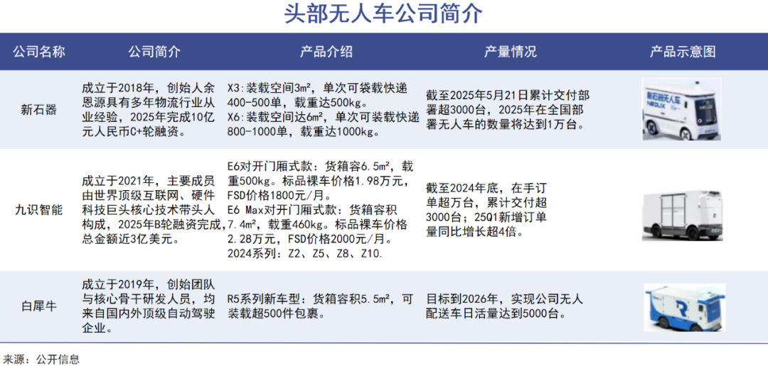 韵达也在财报中表示,企业今年上半年投入了超过500辆无人车,应用于末端配送场景扩展至医疗物资和生鲜冷链等高附加值领域。其无人车有83%来自九识,17%来自新石器。