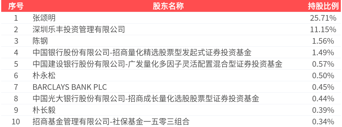 公司股东户数为2.32万户,前十大股东持股数量为8480.36万股,占总股本比例为42.61%,前十大股东持股情况如下:
