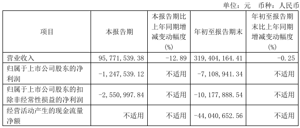 利润端方面,据财报内容,公司利润总额为负786.01万元,同比大幅下降1399.17%;归母净利润为负450.97万元,扣非归母净利润为负481.91万元。前三季度归母净利润与扣非归母净利润分别为负394.76万元和负499.59万元,相较上年同期分别为负710.89万元和1017.79万元,均有所减亏。