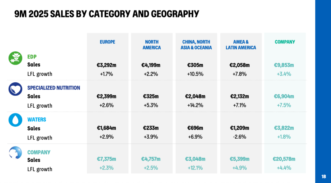 据达能今天下午发布的2025三季报显示,报告期内,中国市场所属大区不仅继续是“增长冠军”,增速也远超其他大区。小食代留意到,在下午召开的业绩会上,集团全球高层点评中国业务时称,脉动品牌、爱他美所属婴幼儿奶粉表现表现都“非常强劲”。