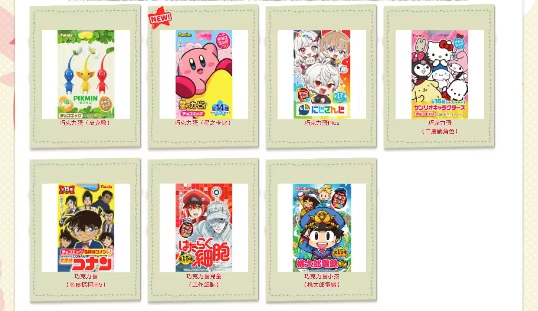 今年,FURUTA又推出了新的IP联名款巧克力蛋系列,包含《名侦探柯南》《星之卡比》《皮克敏》《工作细胞》等等热门IP。