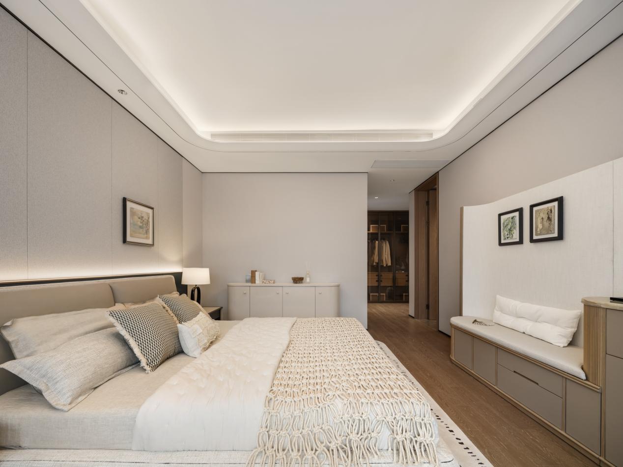 场景流动性溢价:该户型以"可持续生长"为理念,赋予空间随生活演变的适应力。当家庭结构自然演变时,"+1房"的弹性格局可从容适配三代共居或双孩成长的空间需求;当生活形态趋向简约时,南向次卧与客厅的界限消融后,即可拓展为景观横厅,让空间在开放与聚合间自由转换。北侧次卧与独立卫浴形成完整的"静区套房",既是长者的安宁居所,也可作为书房、茶室或私人工作室。创新的"5+1房"布局作为缦云 269户型的核心特色,既满足多代共居的现实需求,也为未来生活方式的转变预留了优雅的应变空间。