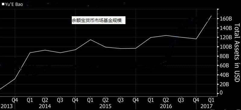余额宝到底在购买什么样的资产?据国际评级机构穆迪指出,在2013年刚推出时,余额宝对接资产大部分为银行存款,然而,到了2017年一季末,银行同业存单占基金投资的比例增加了一倍多,而银行存款的占比连续两个季度下滑,比重逾60%。