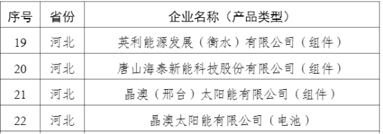 10月29日,工信部网站正式公布现行有效符合《光伏制造行业规范条件》企业名单(前十二批),此次有效符合条件的企业共有129家。其中,河北省有4家光伏企业上榜,分别是英利能源发展(衡水)有限公司、唐山海泰新能科技股份有限公司、晶澳(邢台)太阳能有限公司和晶澳太阳能有限公司。