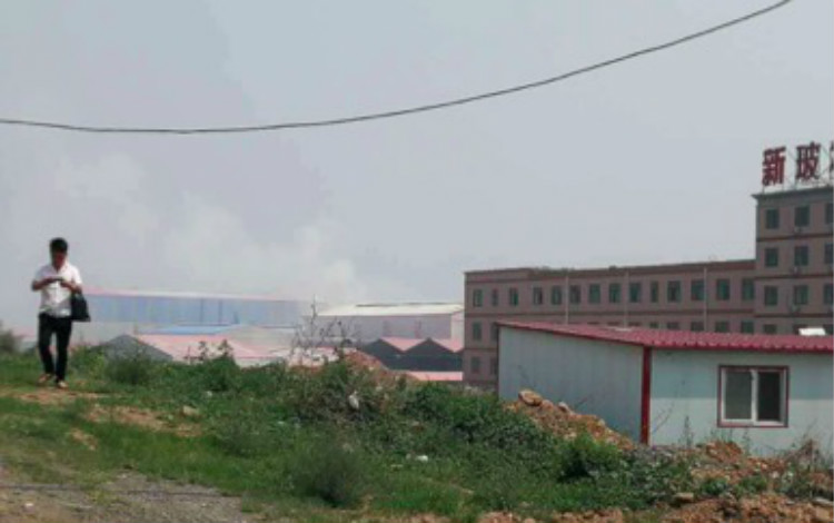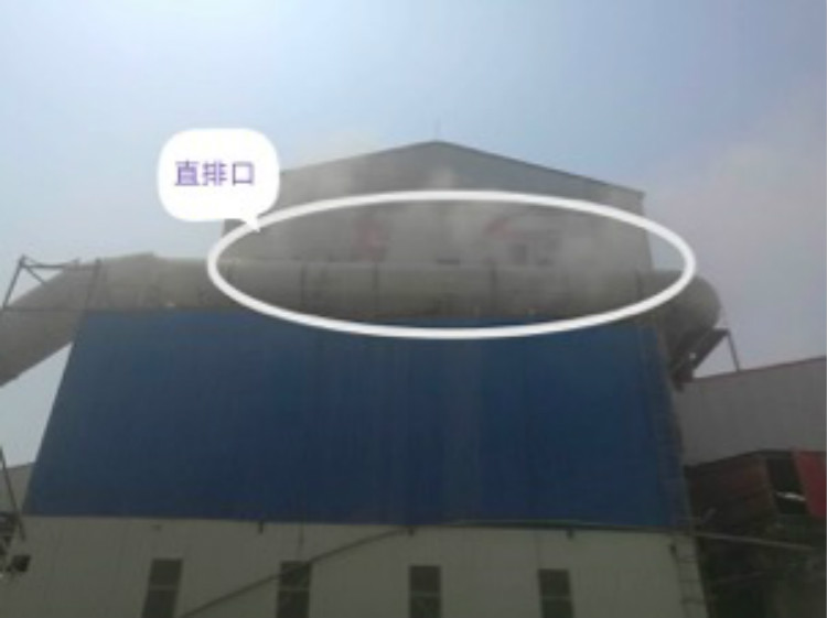 而另一个干燥塔进入脱硫设施前的烟道顶部被开了三个孔洞,未经处理的废气从这三个孔洞直接排放,粉尘在整个厂区上空弥漫。