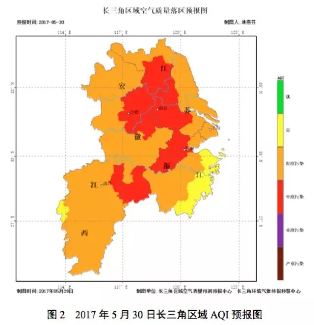 ● 5月30日,长三角受低压倒槽影响,内陆以轻度污染为主,局部中度污染,沿海良到轻度污染,首要污染物O3。