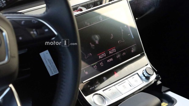内饰采用了全新的奥迪家族式设计,中控台造型简洁明了,细节上采用了大量的横向线条,贯穿式空调出风口设计让中控部分看起来更具有延展性,新车采用了双触屏式的人机交互系统,位于空调出风口上方的液晶显示屏属于临时加装,主要用于新车的调试阶段,未来将被融入中控台内。