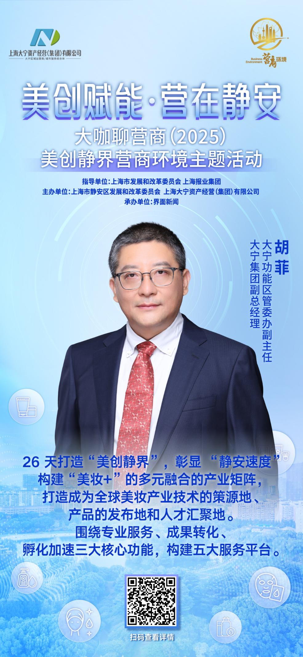 2025年10月28日,“美创赋能・营在静安—大咖聊营商(2025)之美创静界营商环境主题活动” 在大宁“美创静界”美妆健康创新生态社区成功举办。活动由上海市发展和改革委员会、上海报业集团指导,上海市静安区发展和改革委员会、上海大宁资产经营(集团)有限公司主办,界面新闻承办,政企学研各界代表齐聚一堂,共探美妆健康产业生态融合与营商环境优化路径。