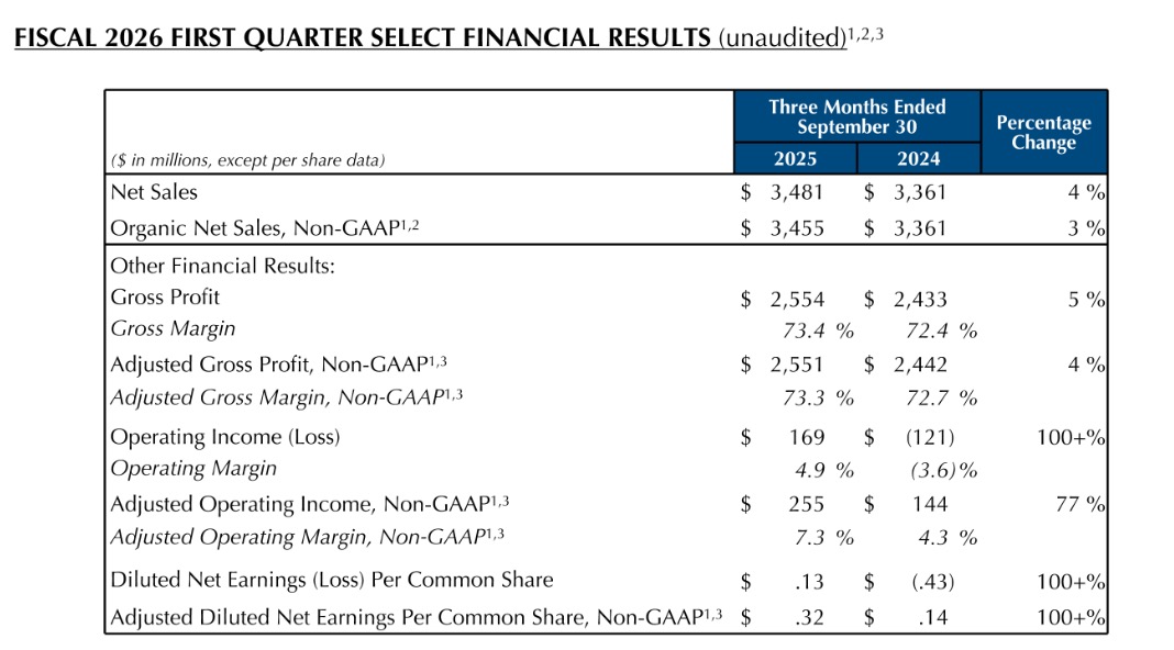 10月30日,雅诗兰黛集团发布2026财年第一季度(2025年7-9月)财报,交出三年来首份有机销售额正增长的季度成绩单。