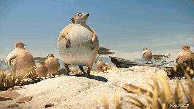 除了鳄鱼,世界上跑的最快的猎豹也悲催了。圆滚滚的猎豹眼瞧着就抓着肥肥的羚羊了,可谁知,猎豹脚底一滑,两只大团子一起旋转,跳跃,闭着眼