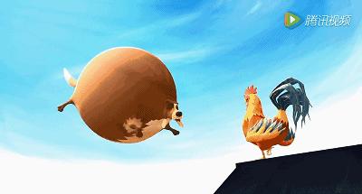 大黄狗本来在地上睡的好好地,,结果被公鸡吵醒之后发现自己在空中飘着,吓死狗宝宝了。。。