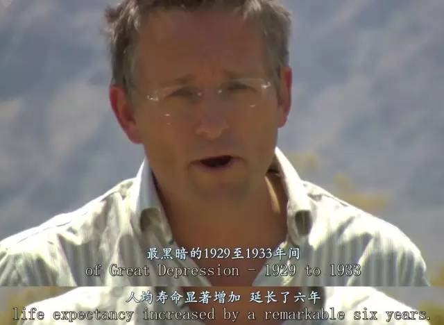 纪录片马上给出了案例: 美国大萧条时期,人均寿命显著增加,延长了6年。