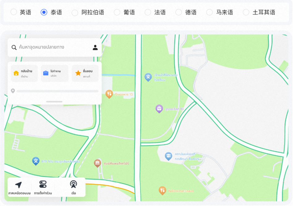 目前,高德AutoSDK国际版已覆盖欧洲、东南亚、中东、南美、澳新、中亚、非洲等全球超170个国家与地区,并支持包括英语、西班牙语、葡萄牙语、法语、德语、泰语、阿拉伯语、土耳其语等在内的19种全球主流语言。