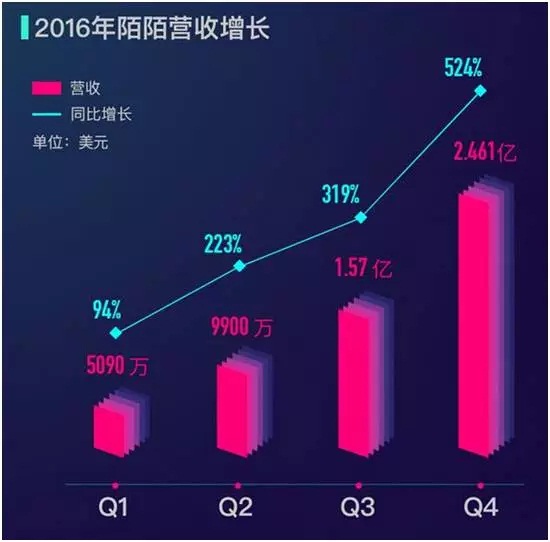 自2016年Q1开始,陌陌每个季度的财报都堪称史上最强。有统计称,按照单季度利润规模计算,中国只有五家互联网公司强过陌陌,分别是腾讯、阿里、百度、网易和唯品会。